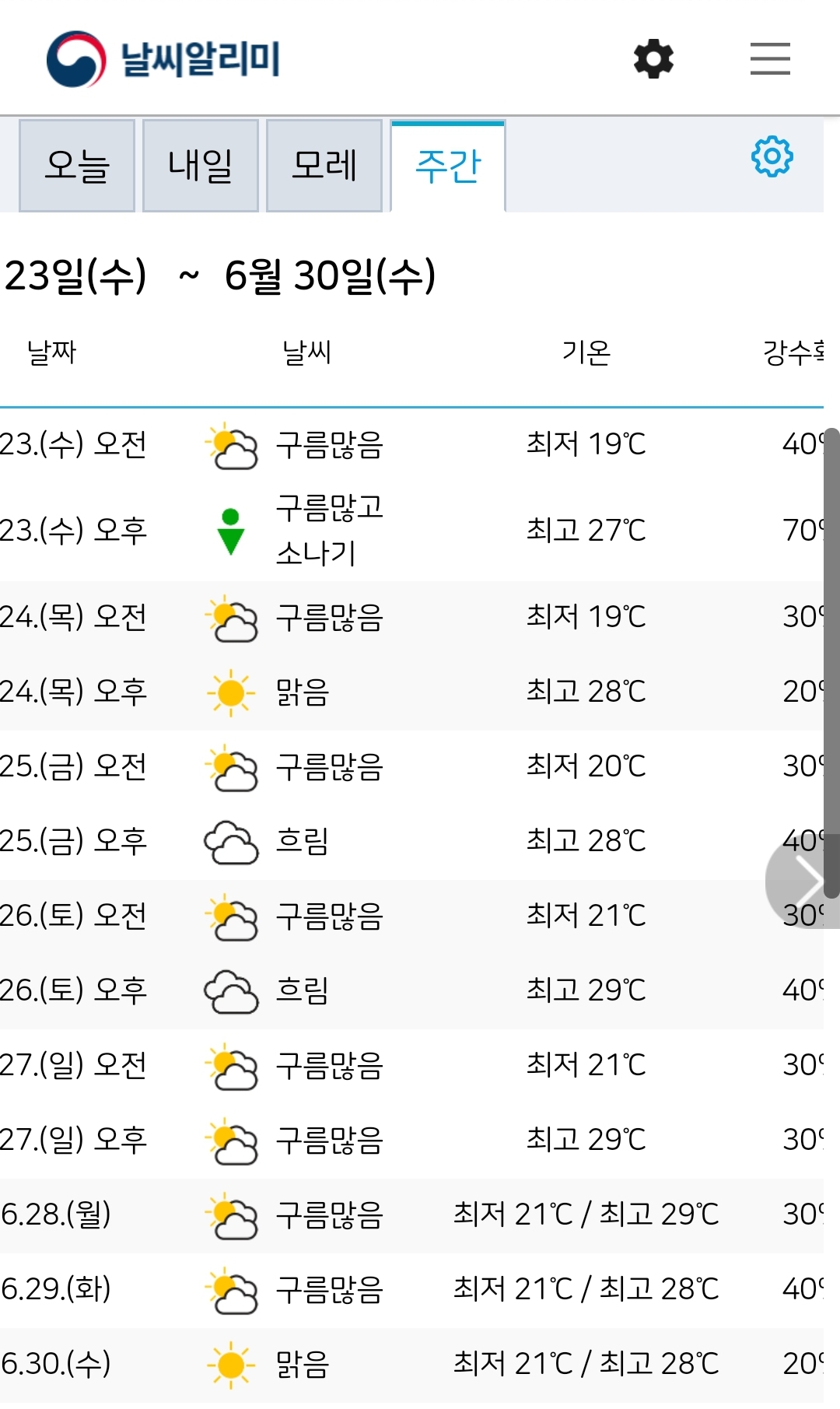 날씨 하나 기가 막히게 좋네요/:/ 기상청 중기(주간)예보(~6.30) 본문