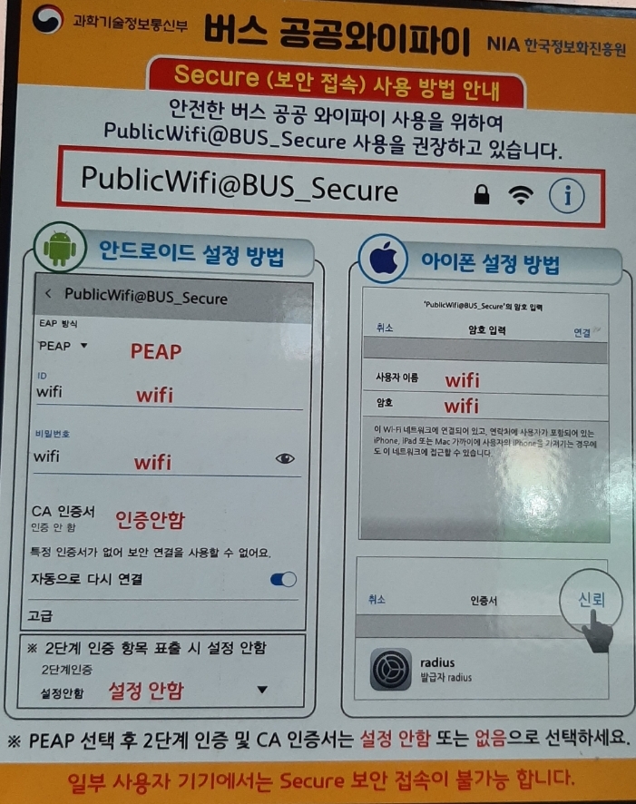 서울처럼 일반, 보안 두 가지. 방법은 비슷하고 보안설정은 약간 다르다.
