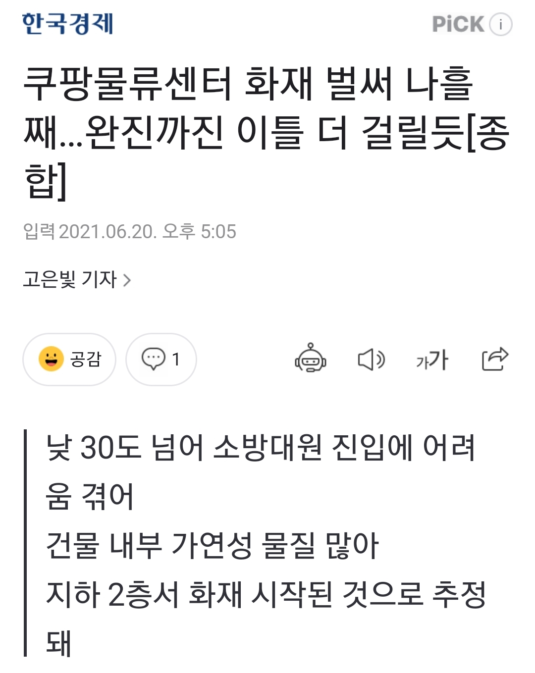 쿠팡 물류센터 화재뉴스 몇 가지를 읽고 본문