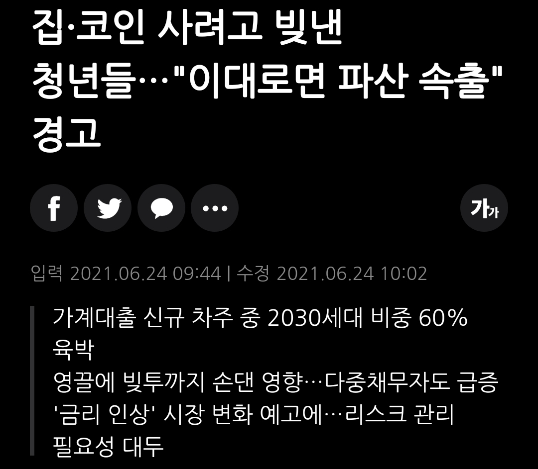 집·코인 사려고 빚낸 청년들…"이대로면 파산 속출" 경고