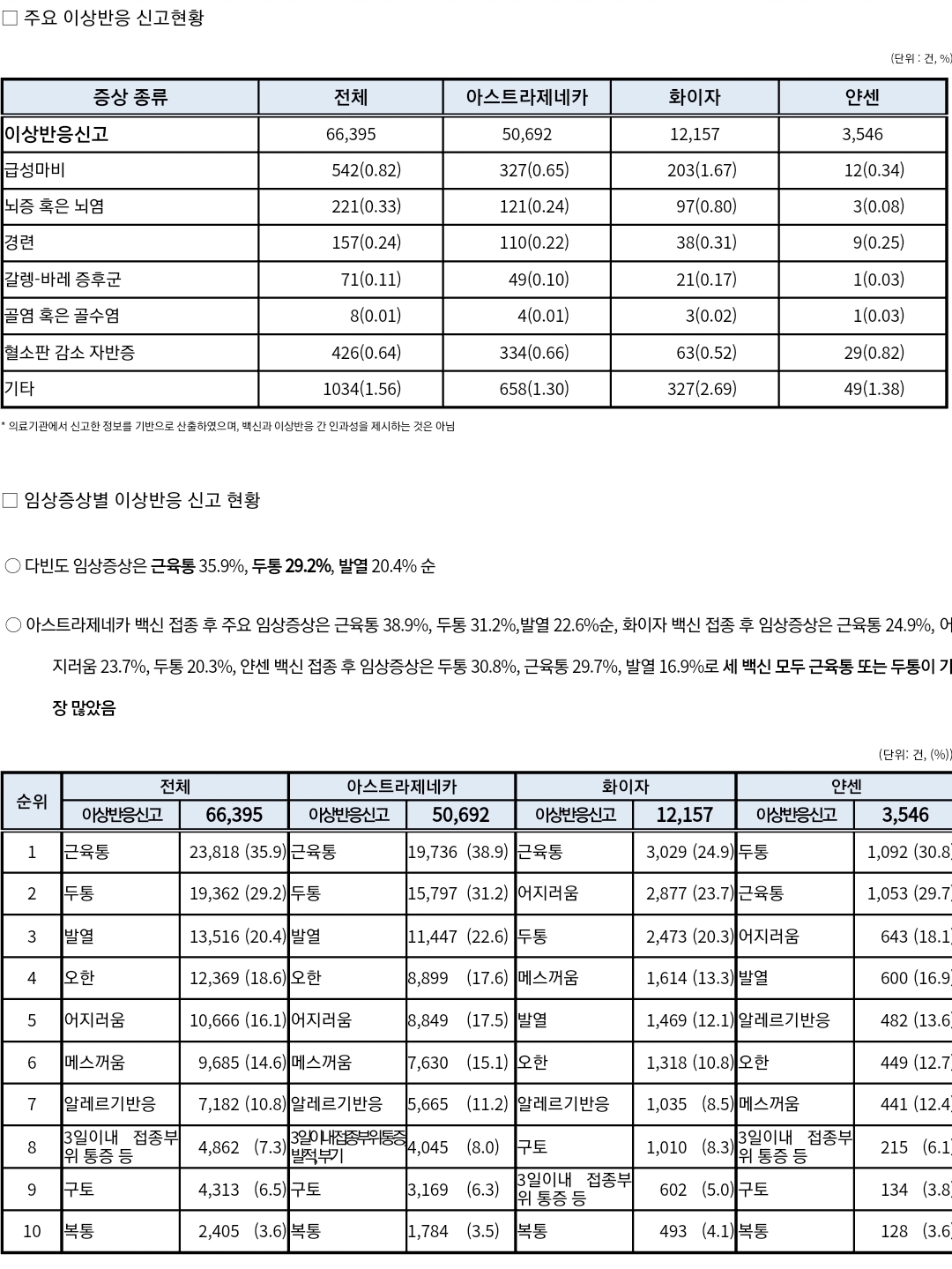 이상반응(부작용) 관련 통계