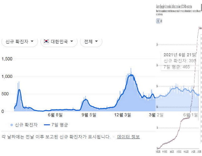 우리나라 코로나19 백신접종률과 확진자추이 본문