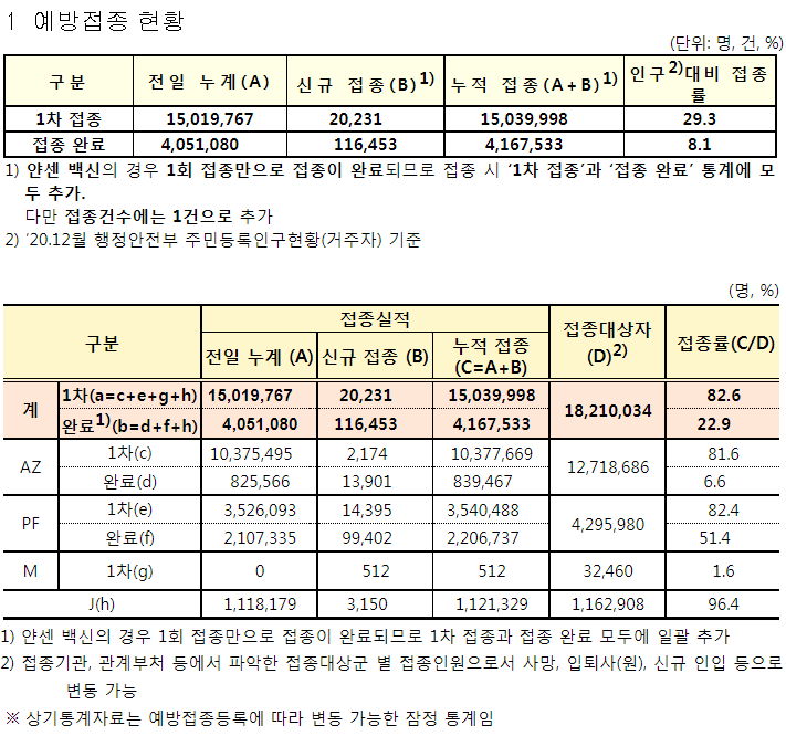 2021년6월 22일 현재. 인구대비 1차접종률 29.3%