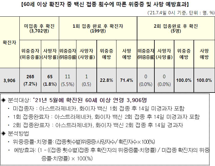 백신 변이주별 예방접종효과