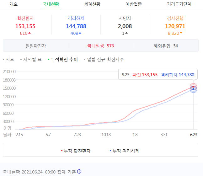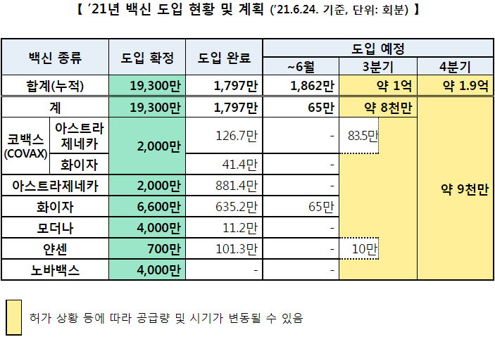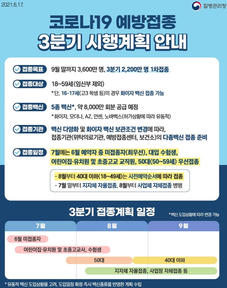 코로나19 집계(2021.6.24. 0시기준)/:/ 610명/:/ 7월 이후 예방접종 계획. 50대와 40대는 7월하순~9월 AZ /:/ 추석 전까지를 목표로 하는 듯 본문
