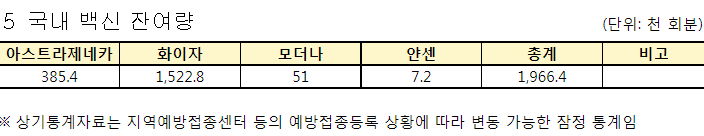 백신수급. 재고 2백만회.