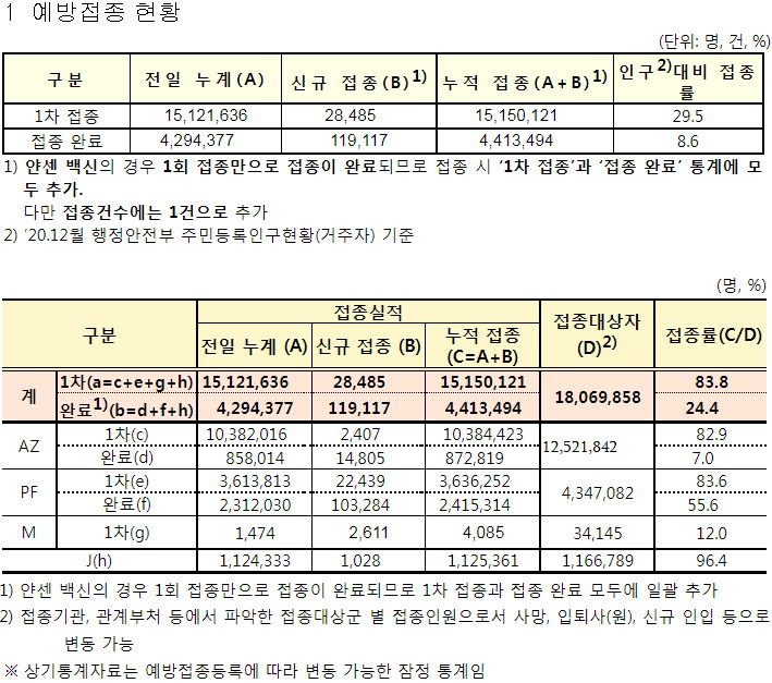 예방접종 진척상황과 이상반응(부작용) 등