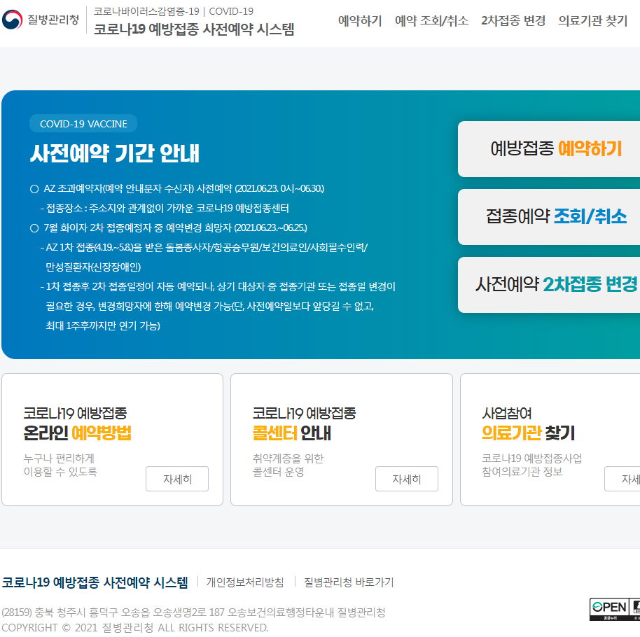 코로나19 예방접종 사전예약 시스템