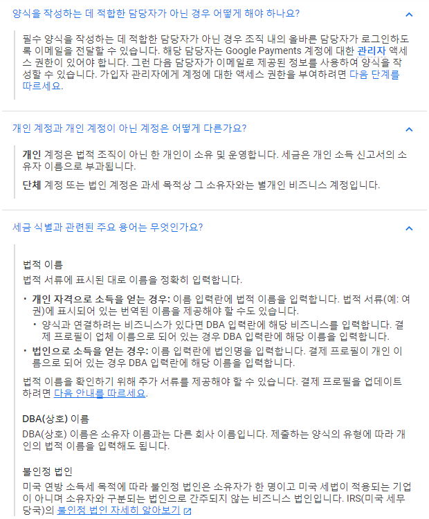 그리고 만약 사업자등록번호를 사용하겠다면, 이 서류작성절차의 맨 처음부터 사업자자격으로 진행해야 할 테고, 애드센스도 다르지 않을까싶은데, 저는 모르는 이야기라 더 적지 않습니다.