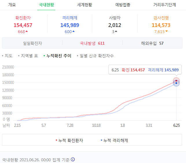 | 코로나19 집계(2021.6.27. 0시 기준)/:/ 614명 (0) | 2021.06.28 |