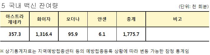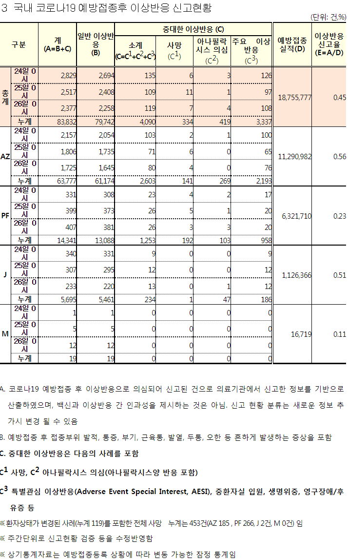 ※ 위 이상반응 신고현황표에는 이상반응 신고접수통계가 있고, "이 집계는 의료기관이 신고한 정보기반이며 심의를 거치지 않아 인과성이 확인된 것이 아님"이라고 명시되어 있습니다.