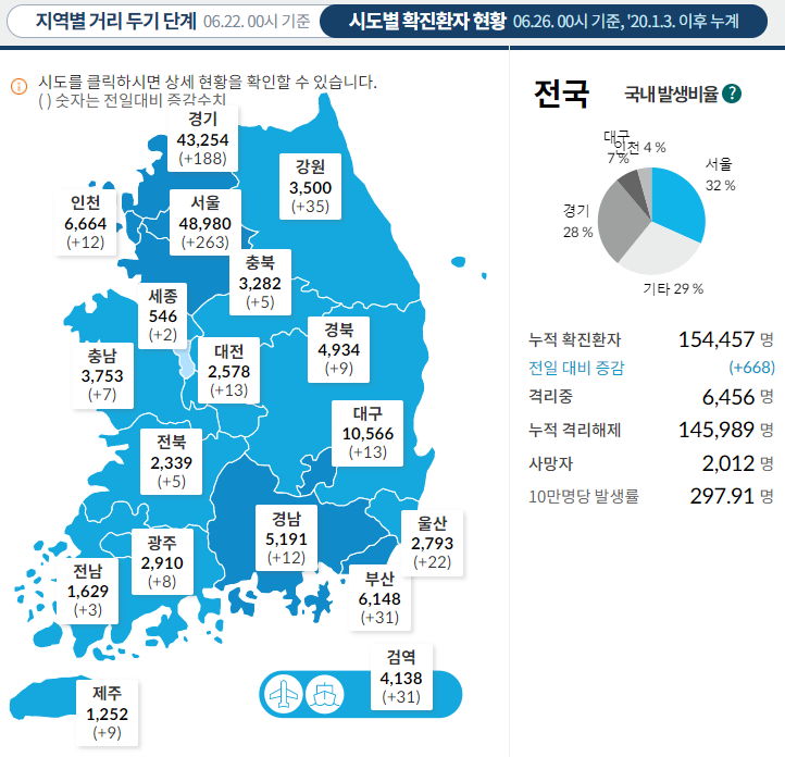 복지부의 공식 홈은 매 2주간격으로 갱신되는 거리두기위주로 지도를 표시합니다. 각 지역은 지자체사이트가 가장 정확합니다.