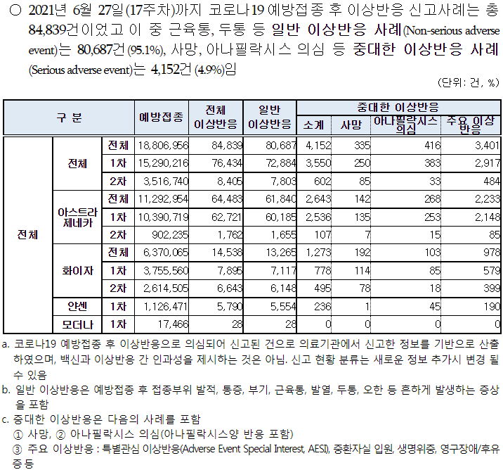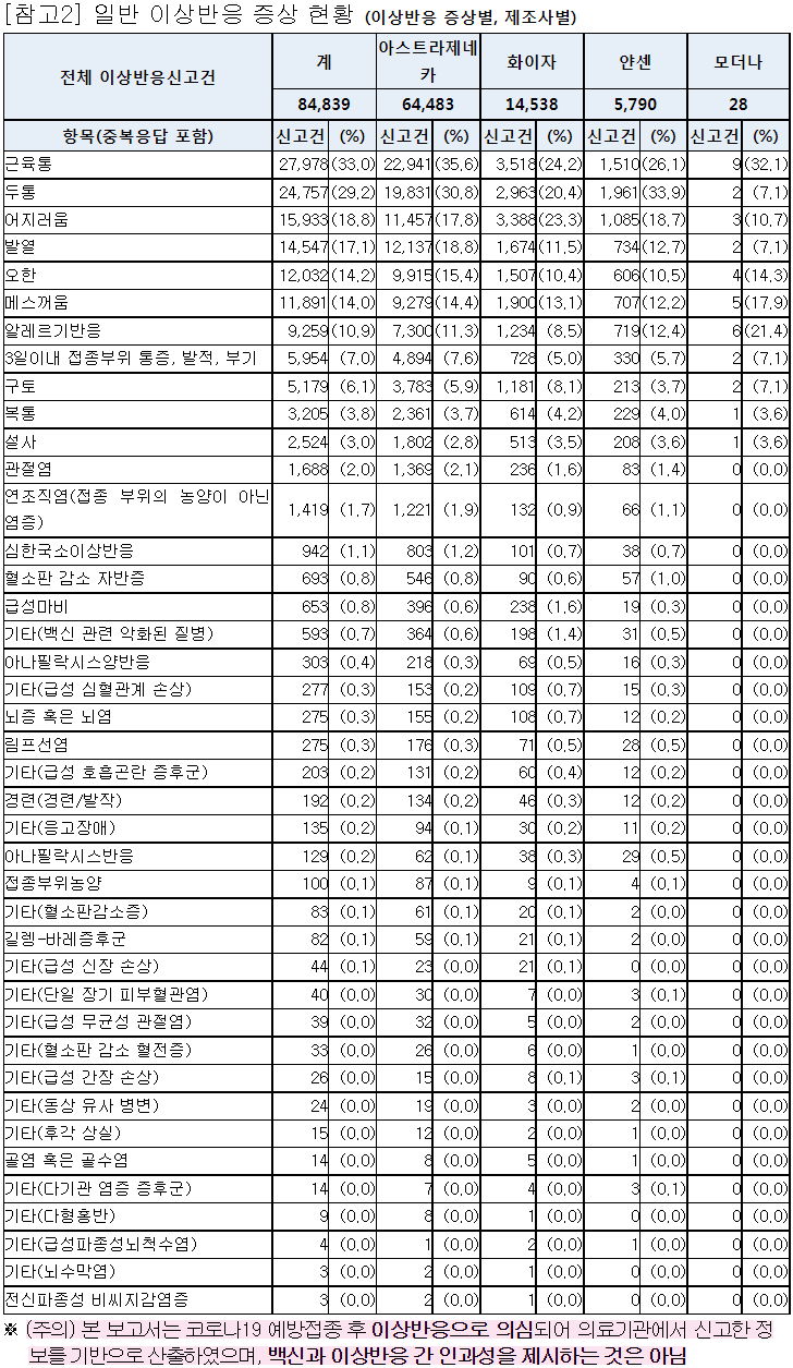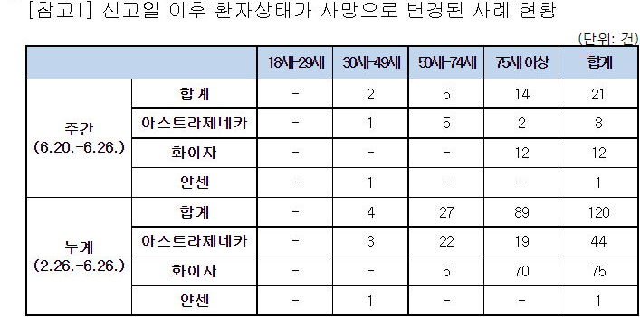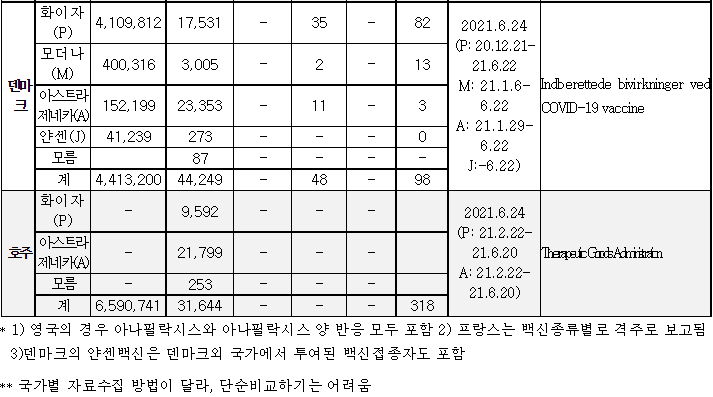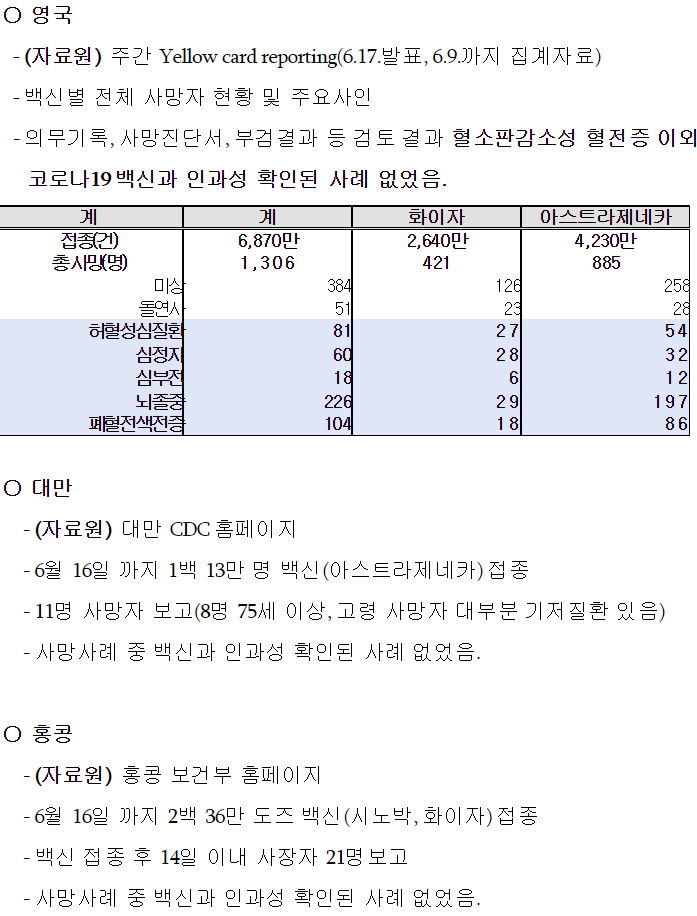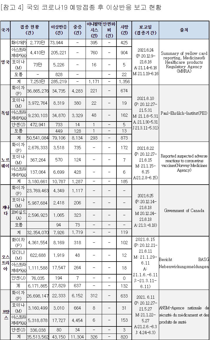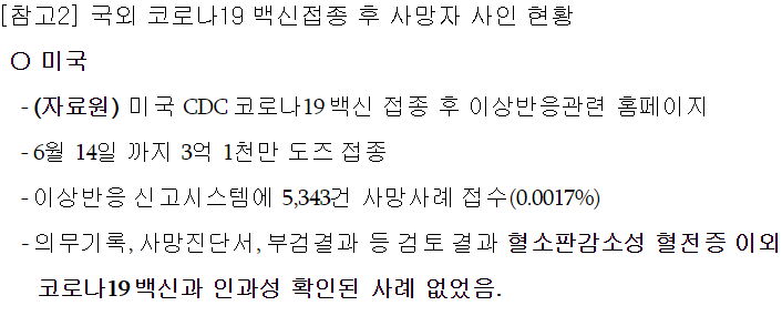 외국 코로나19 이상반응 및 접종 후 사망자 사인에 관해 첨부된 참고용 보도자료