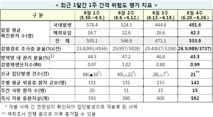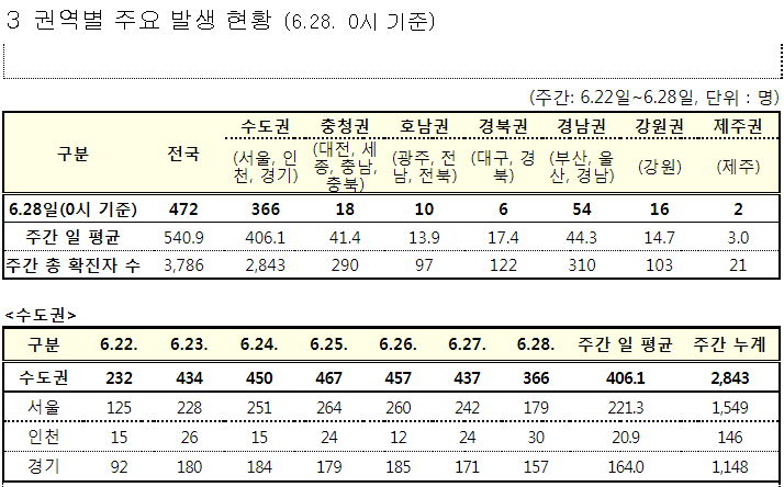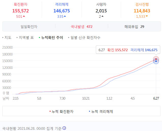 | 코로나19 집계(2021.7.1. 0시 기준)/:/ 762명 중 수도권이 609명 (0) | 2021.07.01 |