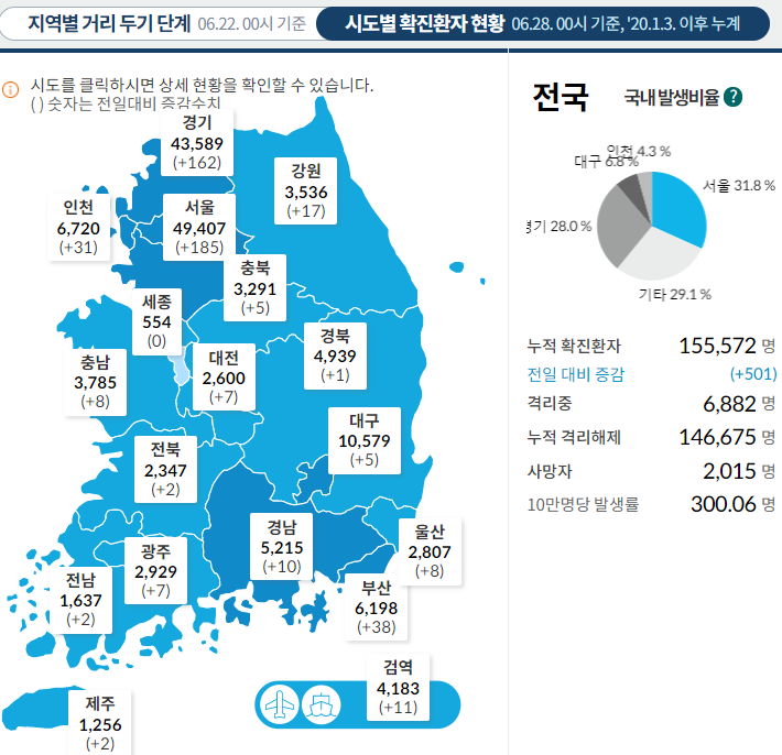 코로나19 집계(2021.7.1. 0시 기준)/:/ 762명 중 수도권이 609명 (0) | 2021.07.01 |
