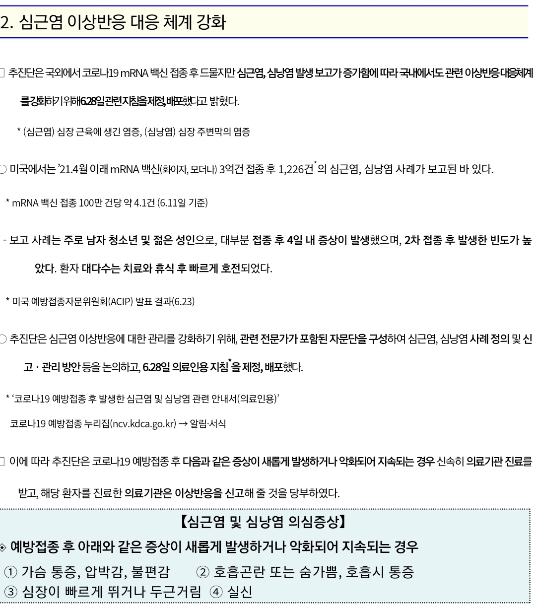 화이지, 모더나같은 mRNA백신, 청년층특이적인 드문 부작용으로 인정된 심근염 공지.