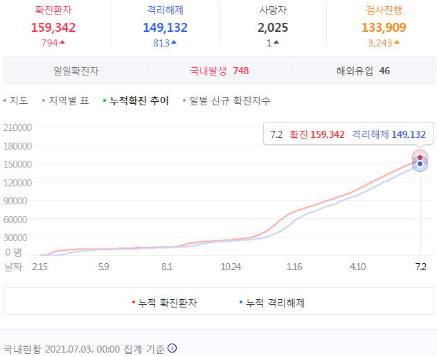 코로나19 집계(2021.7.3. 0시 기준)/:/ 794명/:/ 각국 델타변이 대응 비상 본문