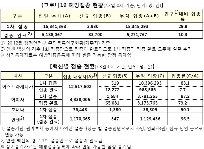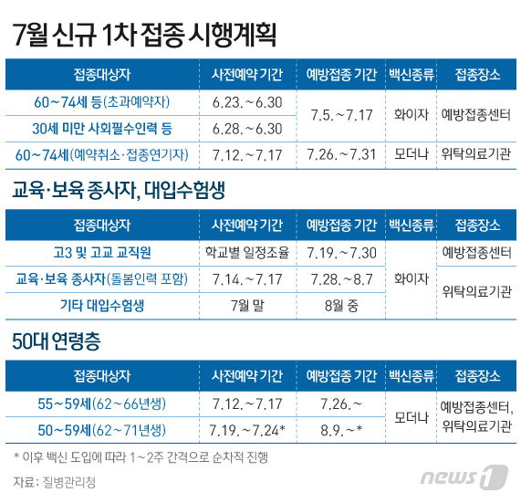 7월 접종계획(뉴시스 기사 발췌, 질병관리청 보도자료)