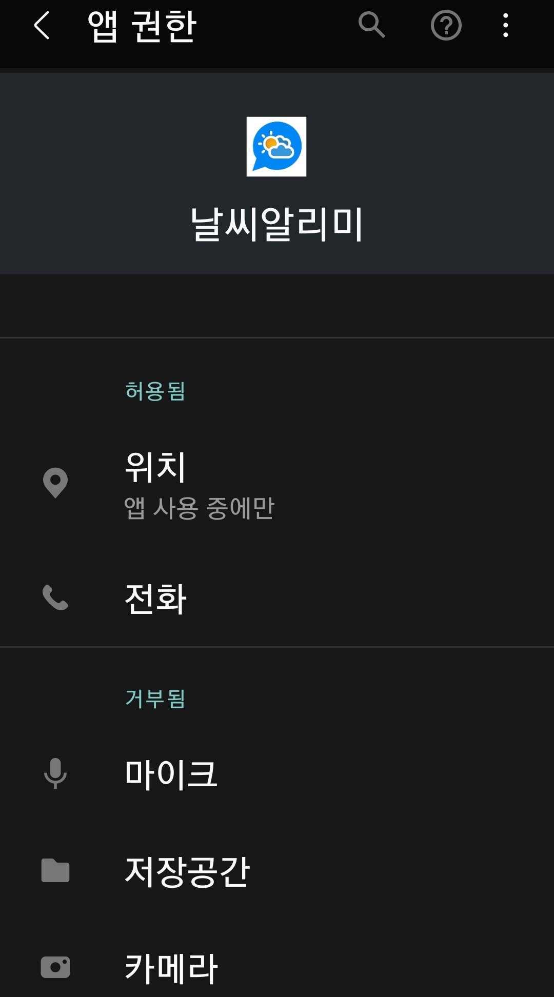 참고로, 날씨앱에 관심지역설정하면 전화걸기받기 권한을 요구하는데, 뒤이어 푸쉬알림 권한과 사진(파일)접근권한같은 걸 요구합니다. 전화권한은 그 기눙에 전혀 필요없는데 정부앱들이 요구하더군요. 쩝.