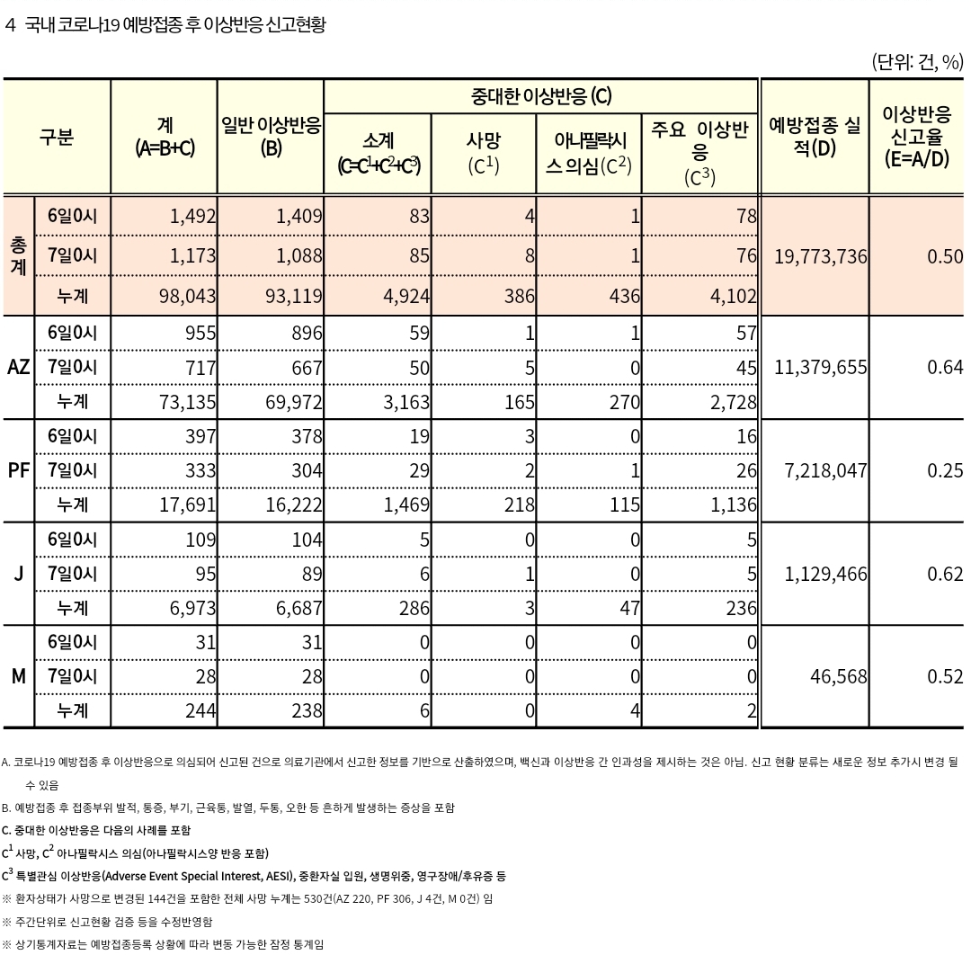 예방접종 이상반응(부작용) 집계. 늘넜지만 전체적으로 %는 그렇게 큰 변화는 없습니다.