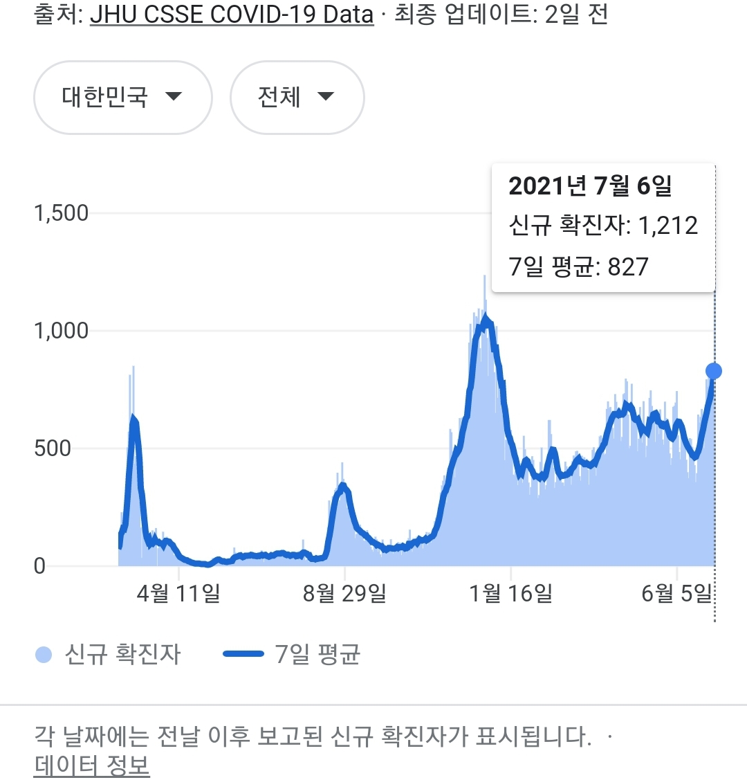 코로나19 집계(2021.7.7. 0시 기준)/:/ 1212명 본문