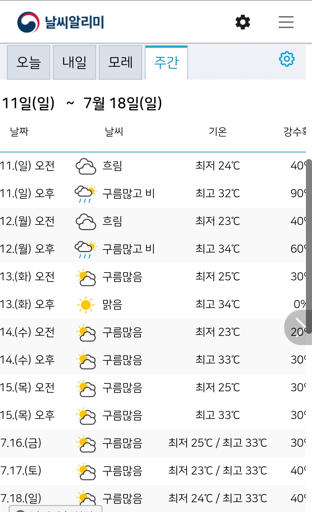 ps. 요즘 기상청 날씨알리미앱이 잘 맞는 것 같습니다.