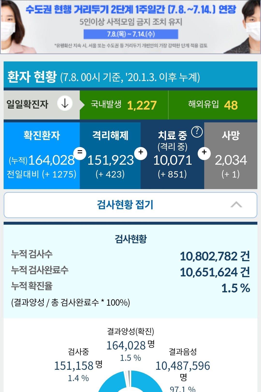 | 코로나19 집계(2021.7.9. 0시기준)/:/ 1316명/:/ 수도권 새 거리두기 4단계 발표(~7.25) (0) | 2021.07.09 |