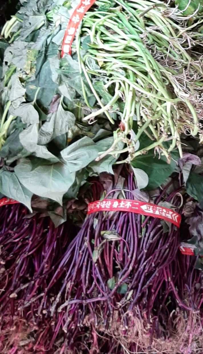 지금 글쓰며 새삼 알아본, 아랫단 자줏빛 고구마순은 뭐였는지 그때는 물어보지 못했습니다. 저흰 그 전에 심어서 살 생각이 없었기에.