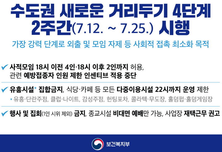 수도권 새로운 거리두기 4단계 시행(7.12~7.25) 보도자료