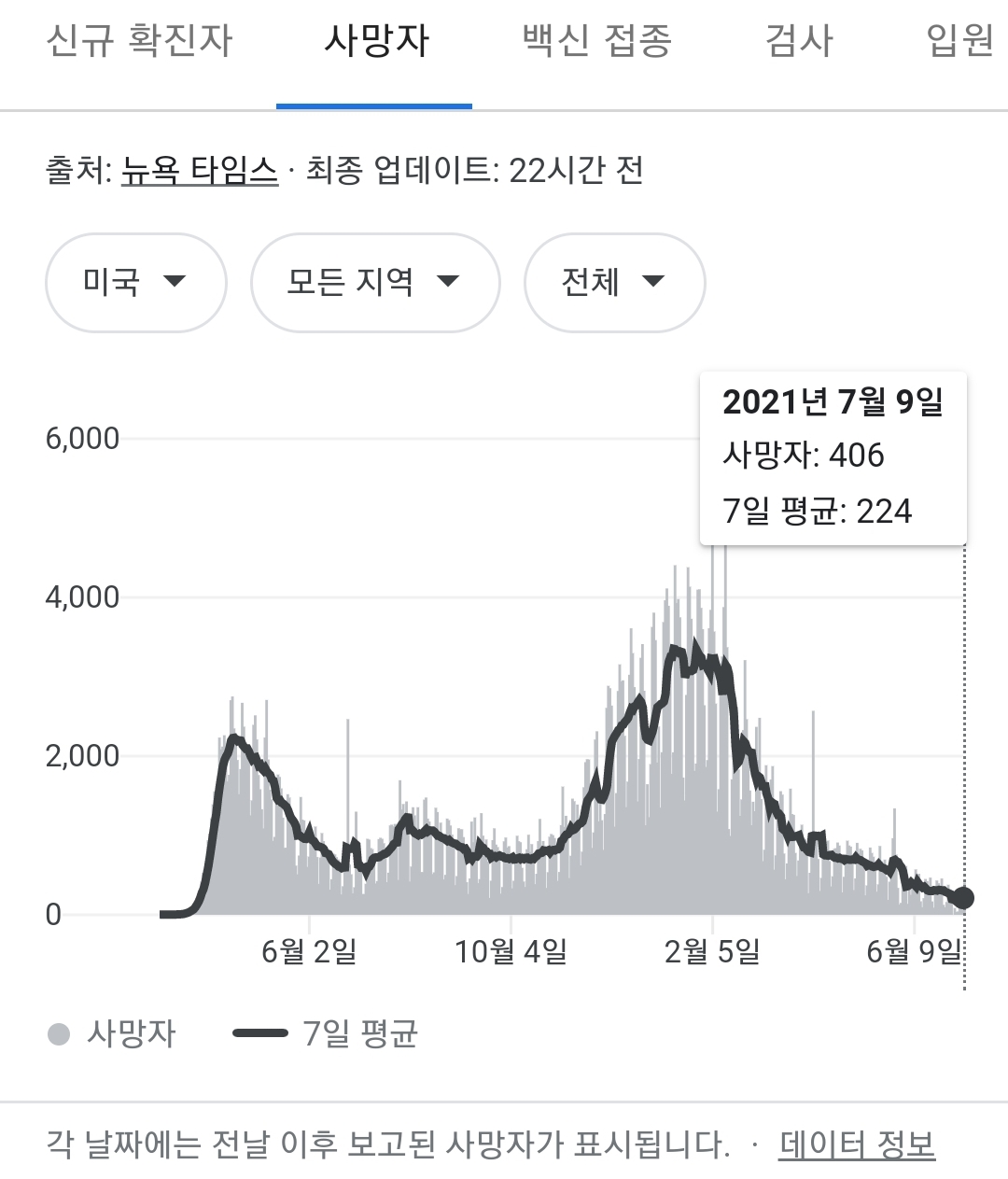 미국은 지금도 확진자도 사망자도 많죠.