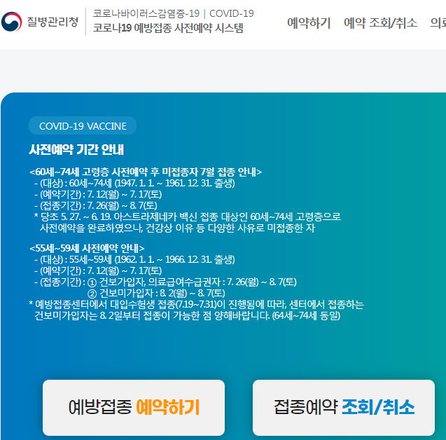 - 60~74세이면서 지난달까지 사전예약을 한 다음, 접종받지 못한/않은 사람들.