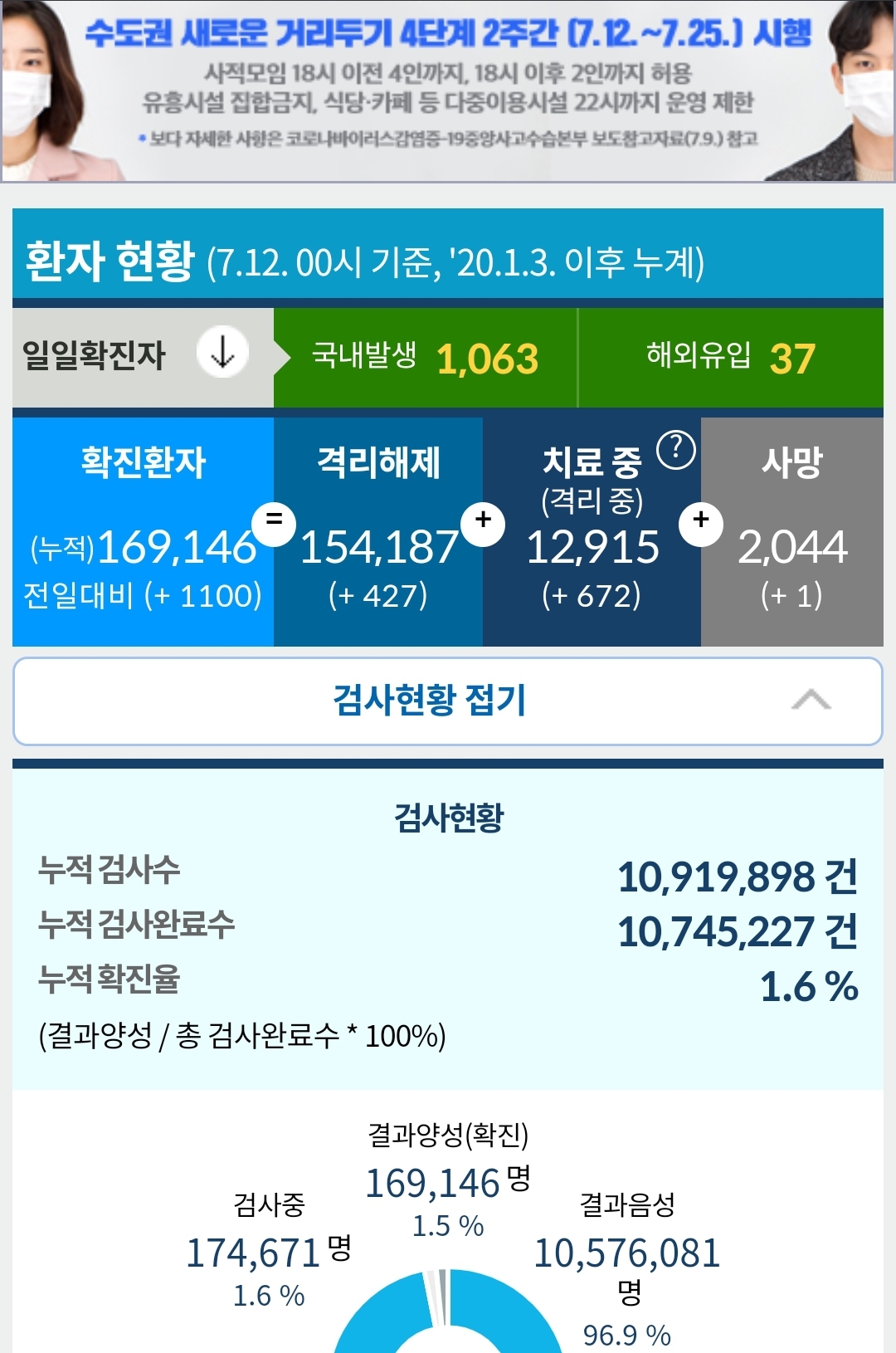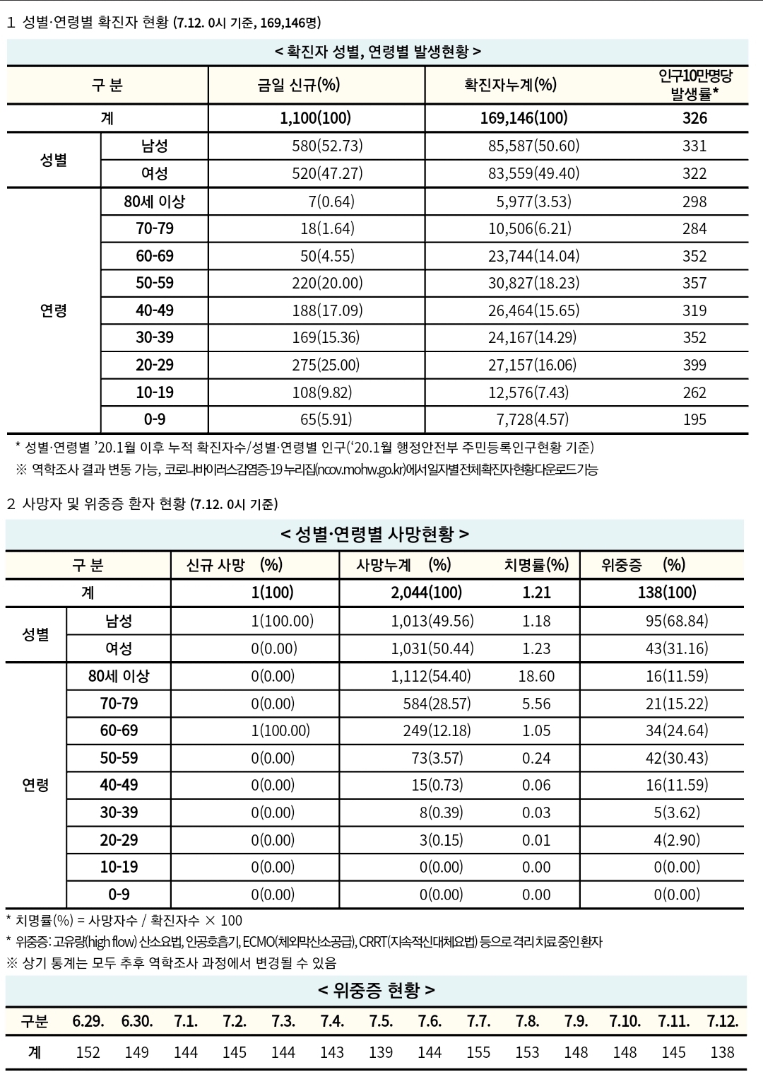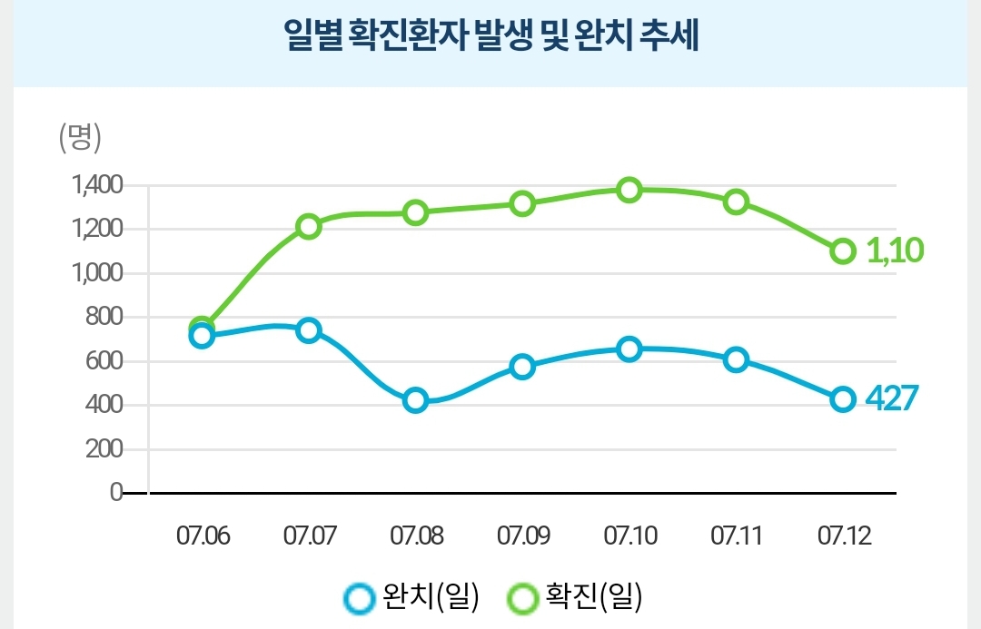 코로나19 집계(2021.7.12. 0시 기준)/:/ 1100명/:/ 자세한 보도자료가 나오는 날 본문