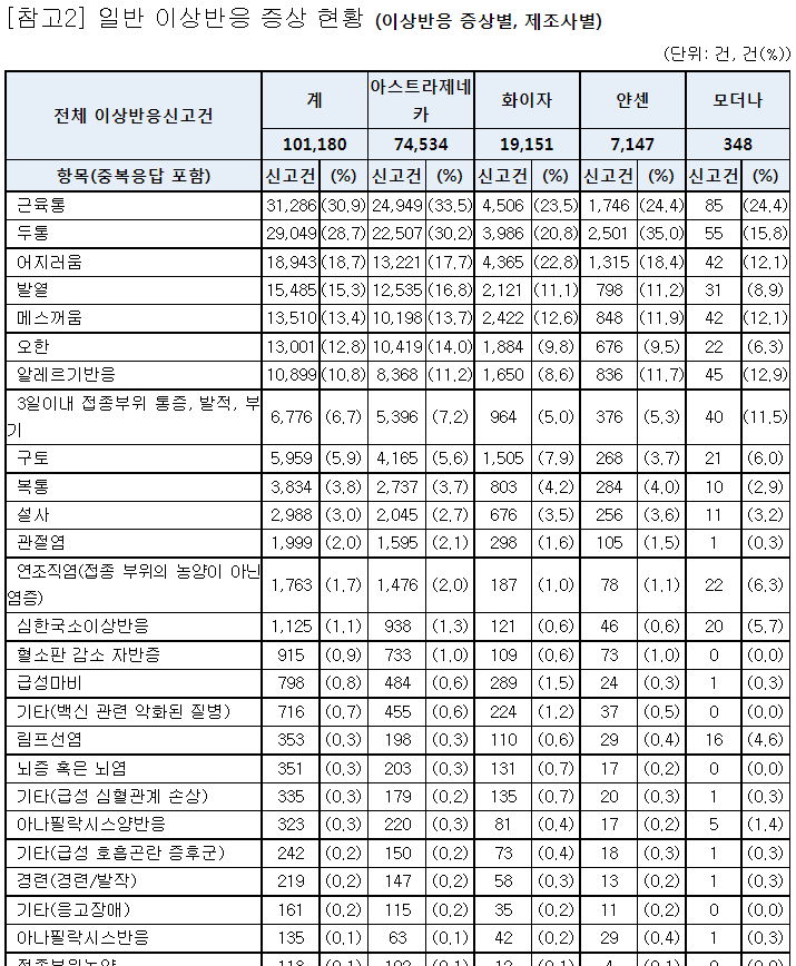 일단은 질병관리청의, 코로나19백신 이상반응(부작용)으로 가능한 증상 중 하나로 등록돼있습니다.