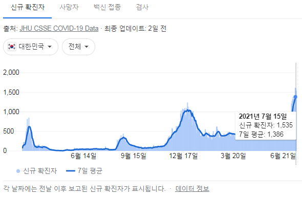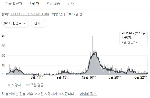 아래 자료의 출처는 정부 사이트, 네이버, 구글입니다. 구글그래프와 복지부사이트는 조금 다를 수 있습니다.