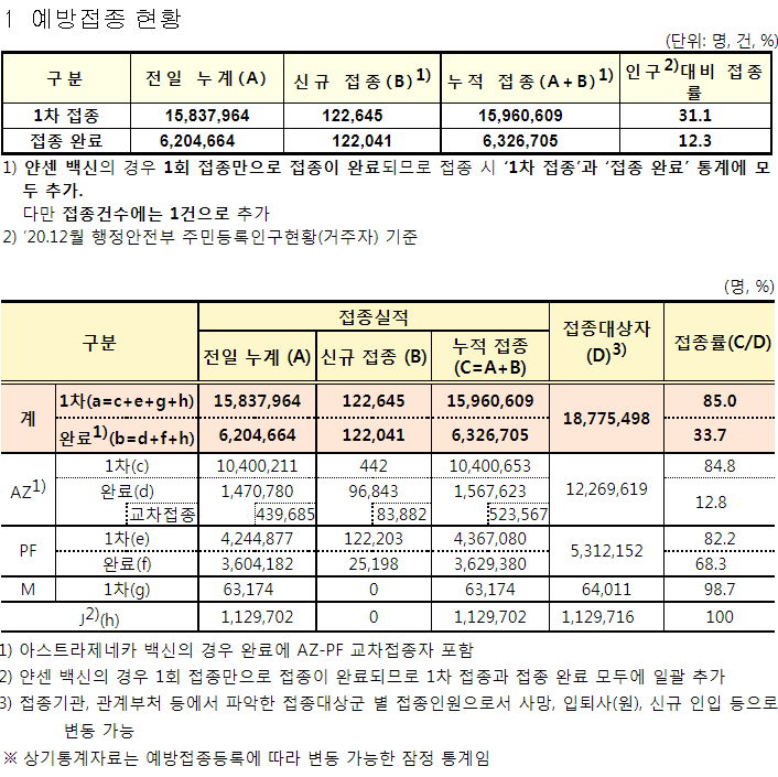 아직 쿨타임 중이며 재고쌓기위주로 하고 접종자는 조금씩 증가 중. 1번이라도 맞은 사람은 주말에 누적 1600만 명을 찍을 것 같네요.