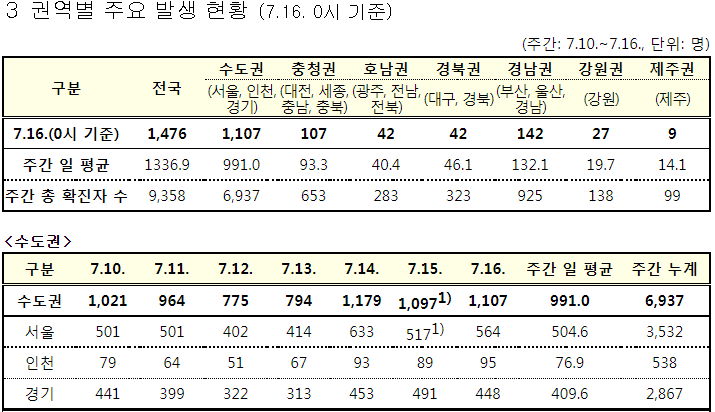확진자는 지난 며칠보다는 좀 줄어서 희망적. 수도권 확진자는 여전히 1천 명 이상..