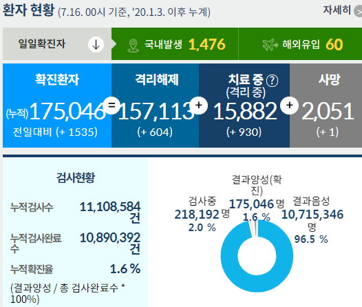 코로나19 집계(2021.7.16. 0시기준)/:/ 1535명 본문