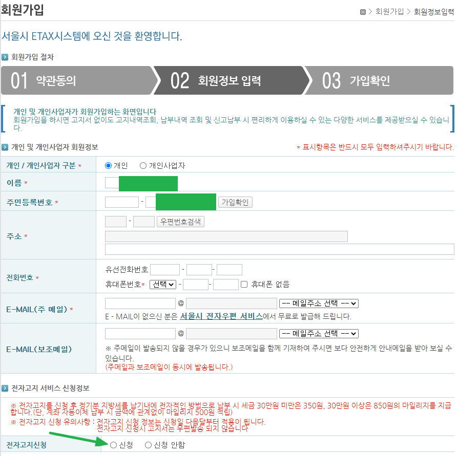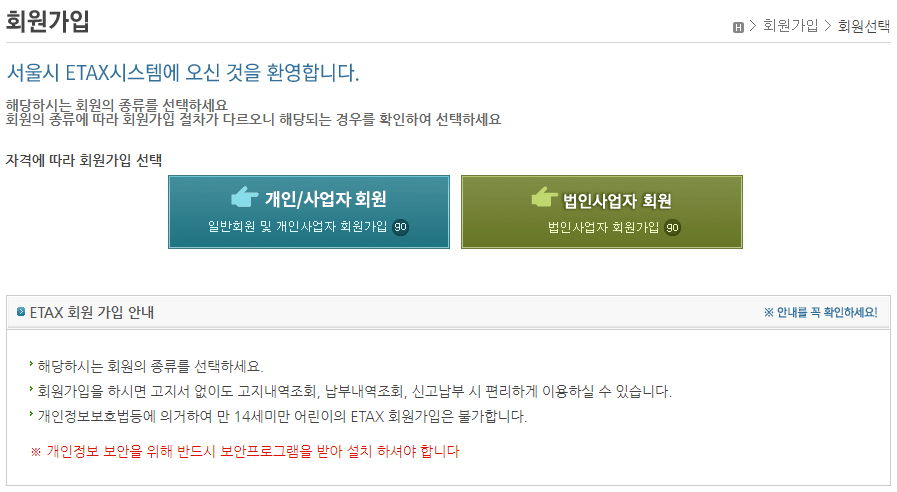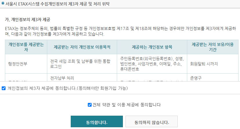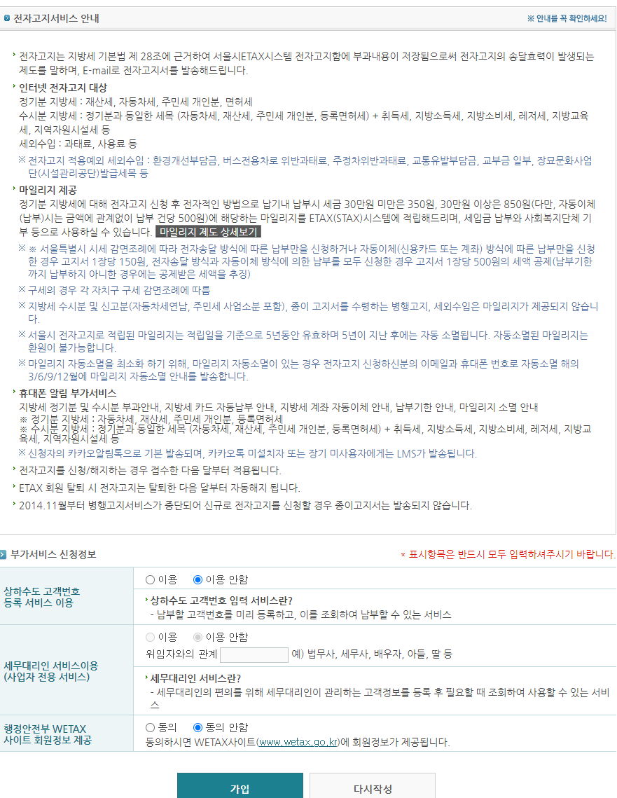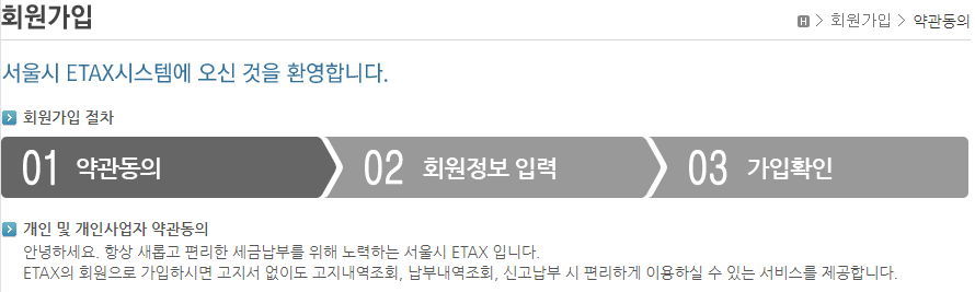 서울시 이택스(eTax) 사이트 회원가입 본문