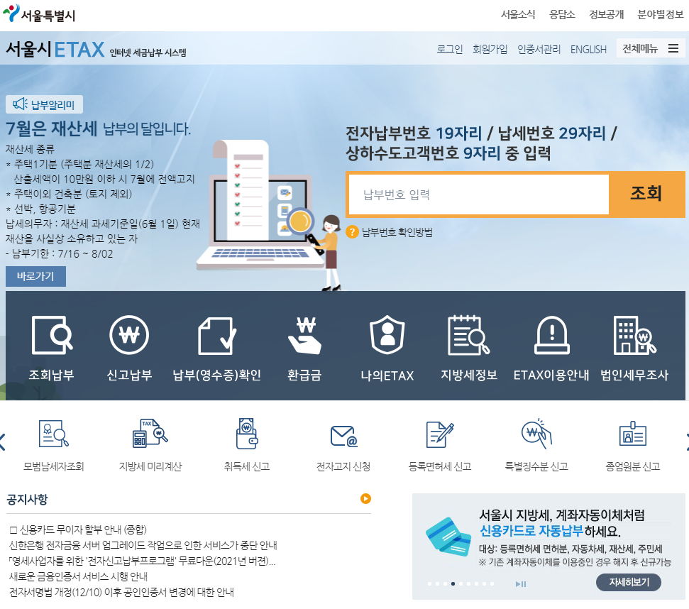 | 서울시 인터넷세금납부시스템(E Tax): 지방세 미리계산 (0) | 2021.04.27 |