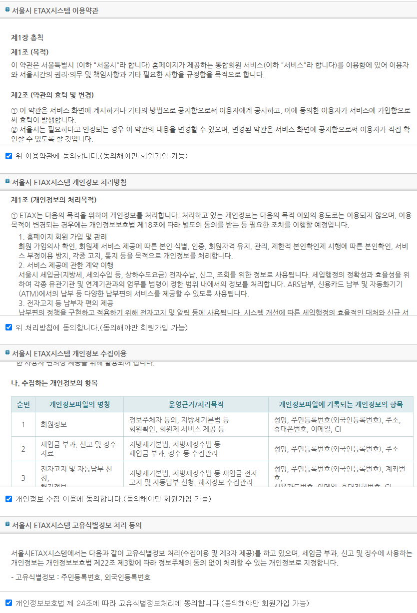 서울시 이택스(eTax) 사이트 회원가입 본문