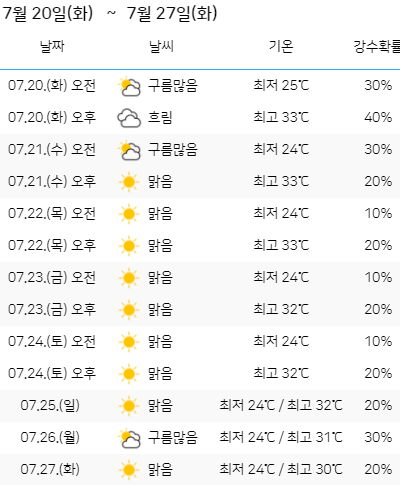 소나기는 예상되지만 빗방울 정도, 그리고 땡볕과 다습한 열대야 본문