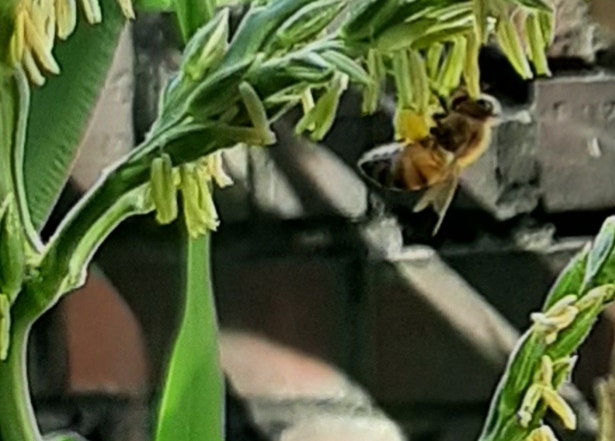 옥수수꽃은 풍매화라고 어디서 읽은 것 같고 또, 바람만으로 수분이 된다고 알고 있습니다만(꿀벌이 옥수수수염에 붙은 건 본 적 없기도 하고)..