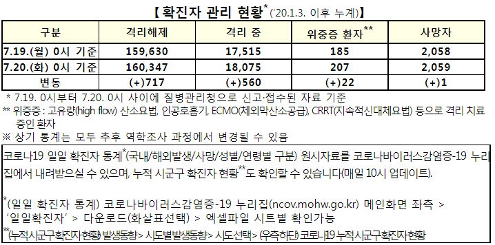 | 코로나19 집계(2021.7.22. 0시 기준)/:/ 1838명 (0) | 2021.07.22 |