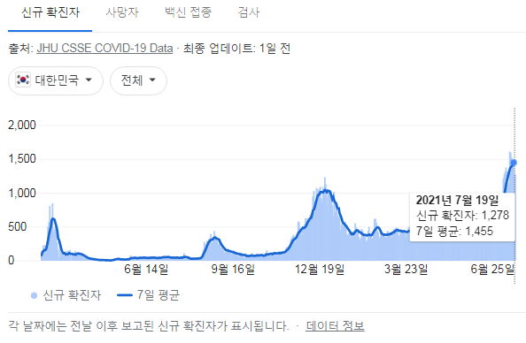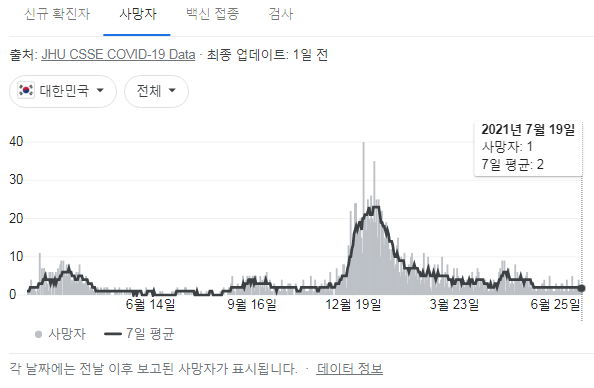 아래 자료의 출처는 정부 사이트, 네이버, 구글입니다. 구글그래프와 복지부사이트는 조금 다를 수 있습니다.