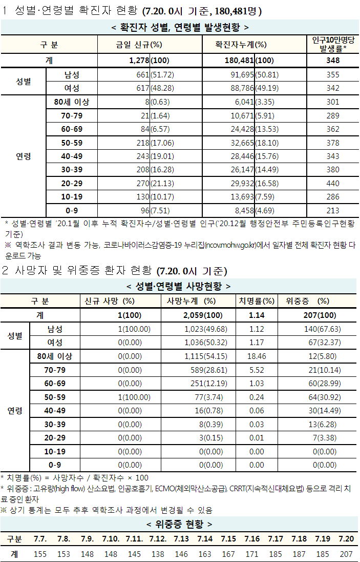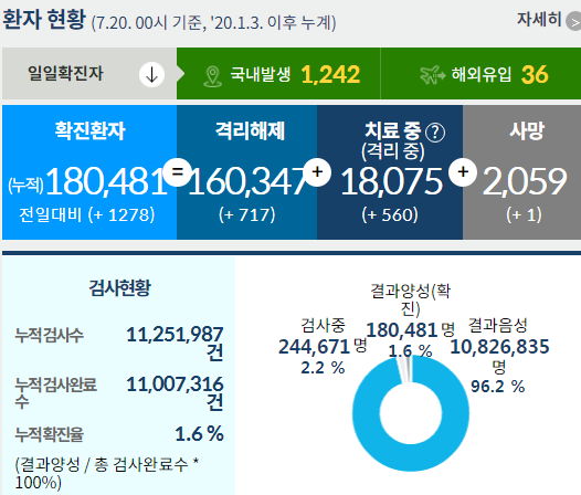 코로나19 집계(2021.7.20. 0시기준)/:/ 1278명 본문