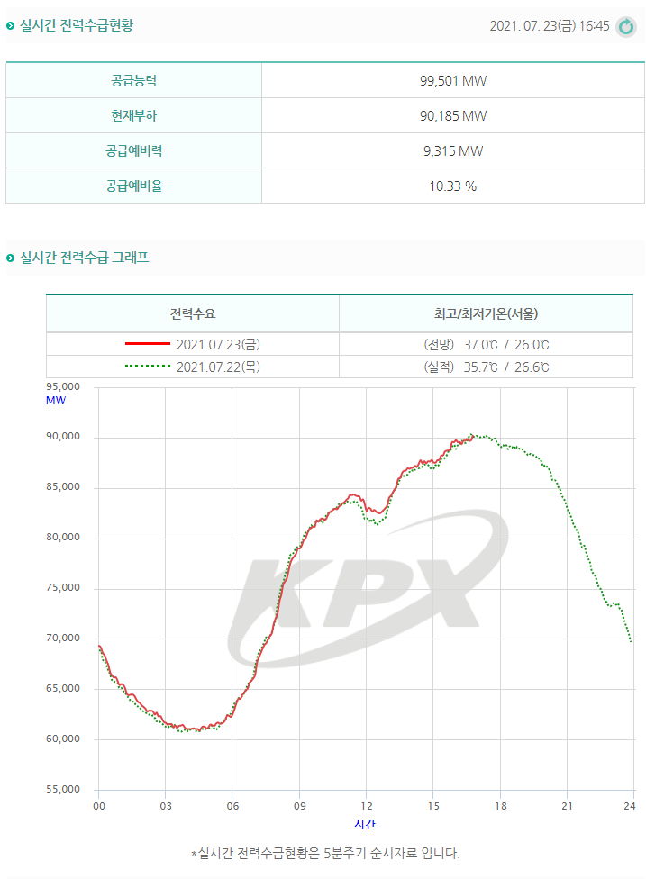 이달들어 전력수급이 불안정한 것 같군요/:/ 전력거래소 실시간 전력수급현황 본문