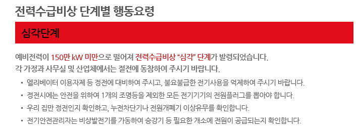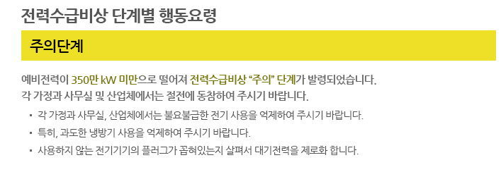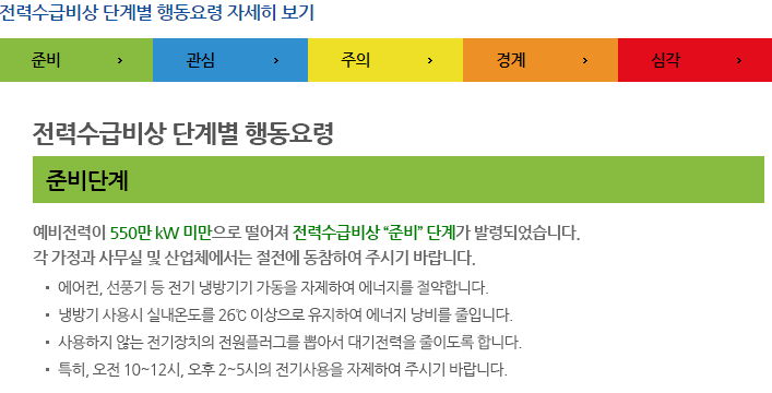 출처는 한국전력거래소입니다. 전력공급예비량이 약 5.5%아래인 5.5GW를 깨고 내려갈 때 이야기. (오늘은 약 10%정도입니다)
