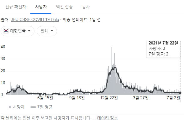 아래 자료의 출처는 정부 사이트, 네이버, 구글입니다. 구글그래프와 복지부사이트는 조금 다를 수 있습니다.
