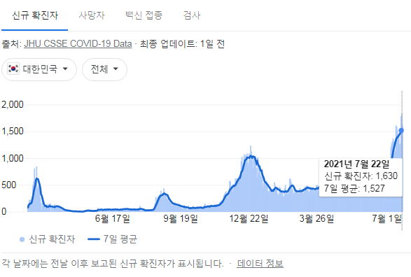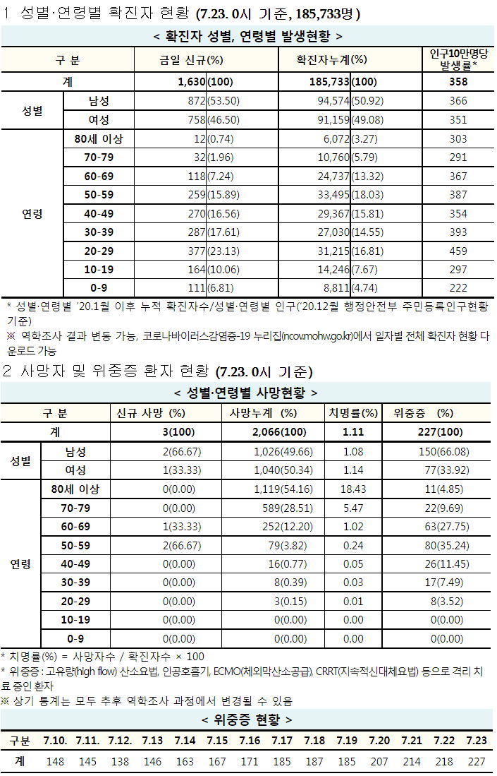 코로나19 집계(2021.7.23. 0시 기준)/:/ 1630명 본문