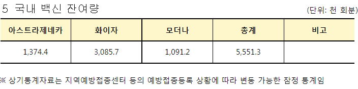 백신 재고는 2백만깨고 내려가던 때와 달리 이제 꽤 늘었습니다. 550만 정도.